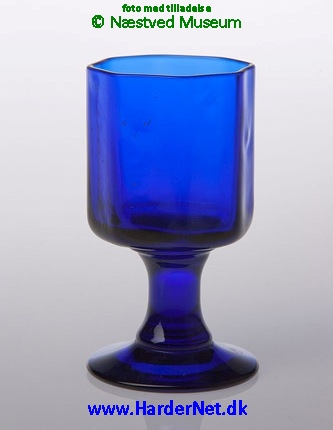 Navn: | Likørglas, koboltblå ottekantet kumme, rund stilk, flad fod. |